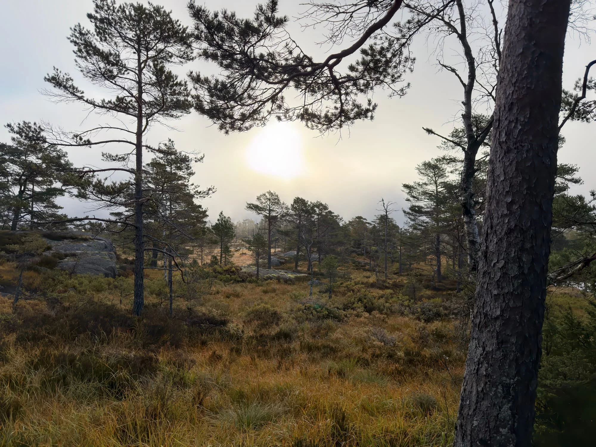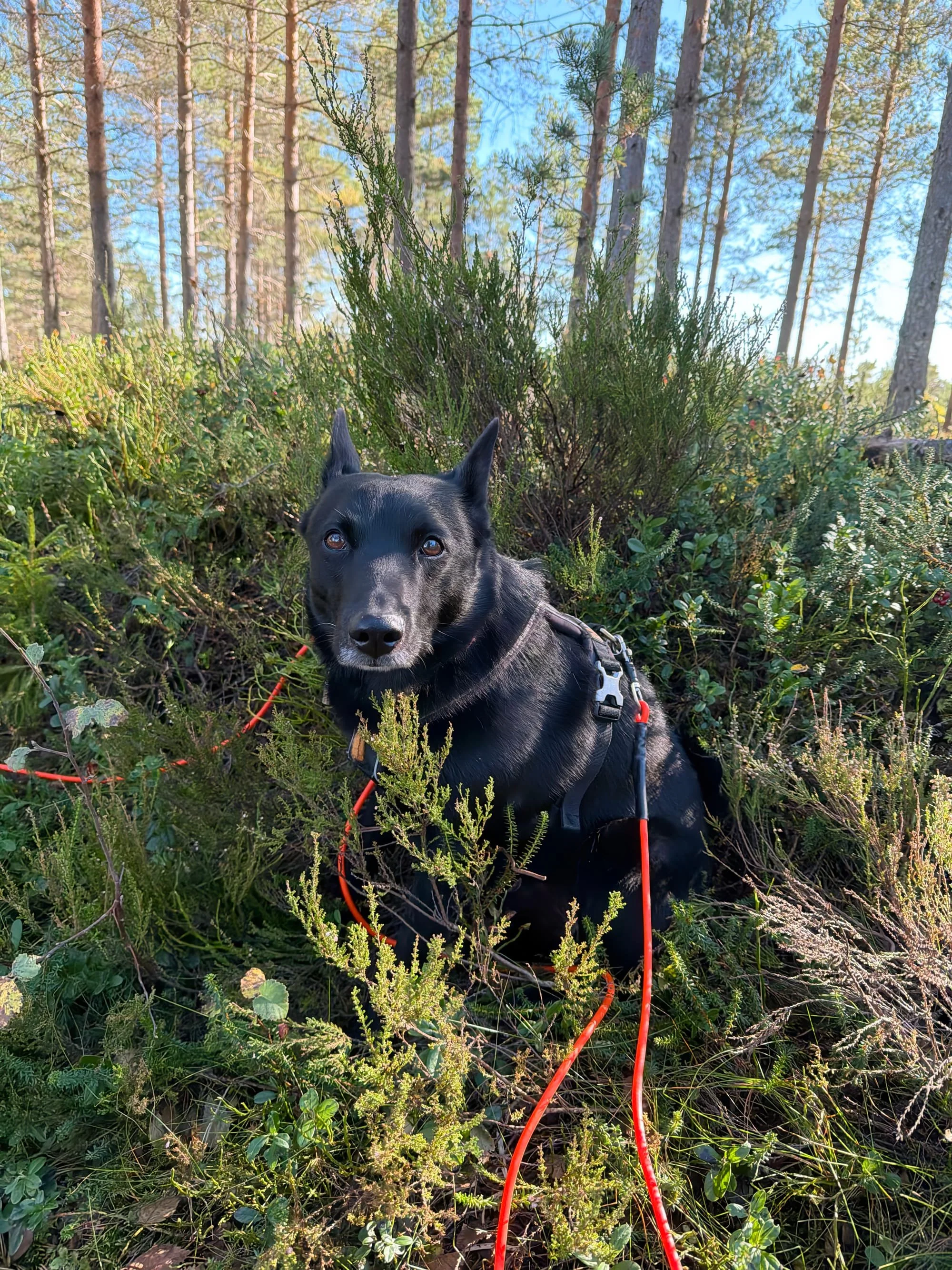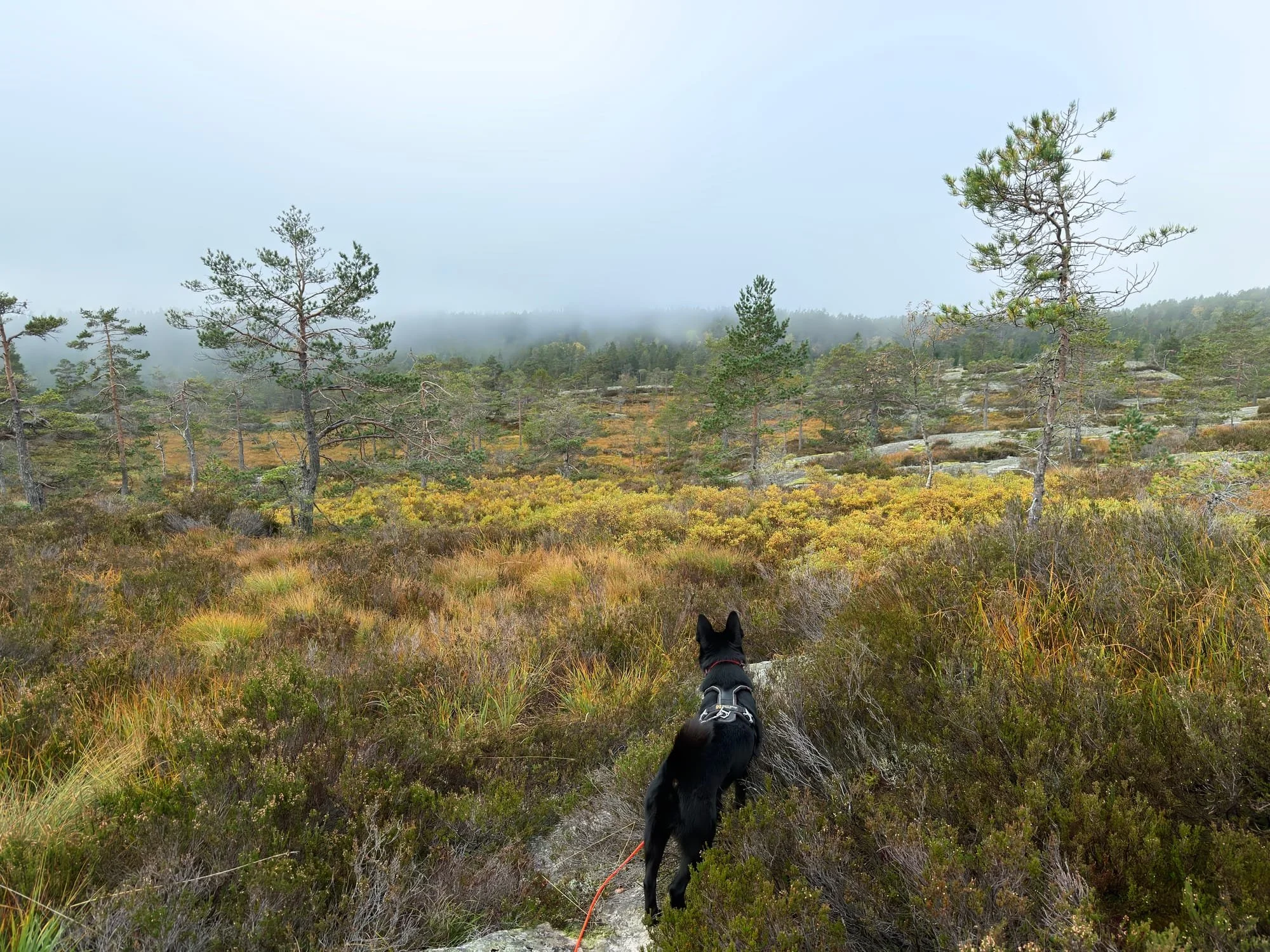 Vi så hverken elg eller hund, men de var lette å følge på lyden, og på nærmeste så var de under 100 meter fra oss et par tre ganger i løpet av formiddagen. Det er litt haug og hei der vi har camp, så det er ikke veldig mange meter med fri sikt. Hadde jeg gått bort på nærmeste kolle og satt meg, så hadde jeg fri sikt til store områder, men jeg ville jo ikke det i denne settingen. Jeg satte meg godt til rette i stolen med den ene morrakaffekoppen etter den andre og lyttet på podcast, for er det noe elgen ikke liker, så er det menneskestemmer. Igjen, jeg var ikke redd for annet enn at Kenny skulle bli skadet, men det var noe jeg kjente skikkelig på.