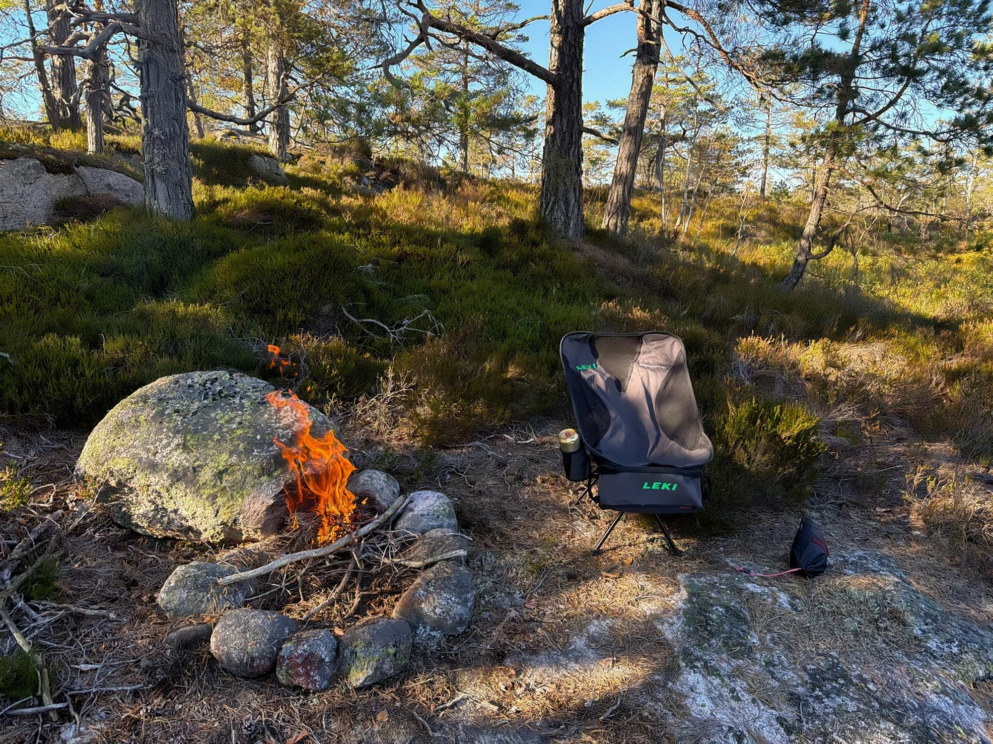 Vi kjørte opp i lunsjtiden på torsdag og ble møtt av et kjempevær, lett trekk, 16 °C og sol fra en blå himmel. Så snart vi er på lokasjon, så setter jeg alltid teltet opp med det samme, pakker ut og gjør alt klart. Men ikke denne gangen, jeg var helt utslitt etter denne lille etappen å satte meg rett ned i stolen jeg hadde med, da kom det masse små bugs frem med det samme, så dette ble første gang jeg fyrte opp bål før teltet var oppe.