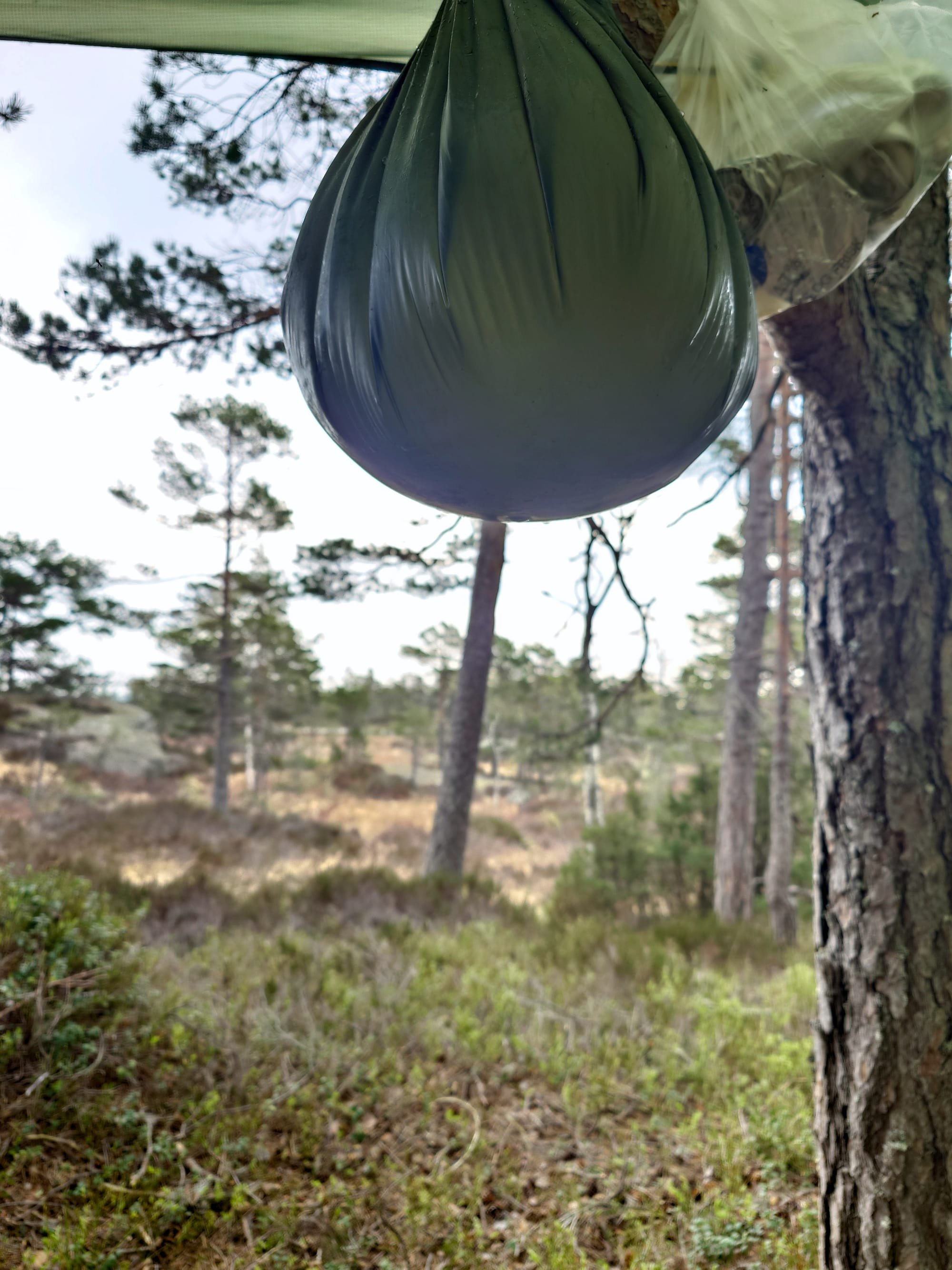Helsport pose i bruk på en annen tur, henger på samme kvist denne turen.
